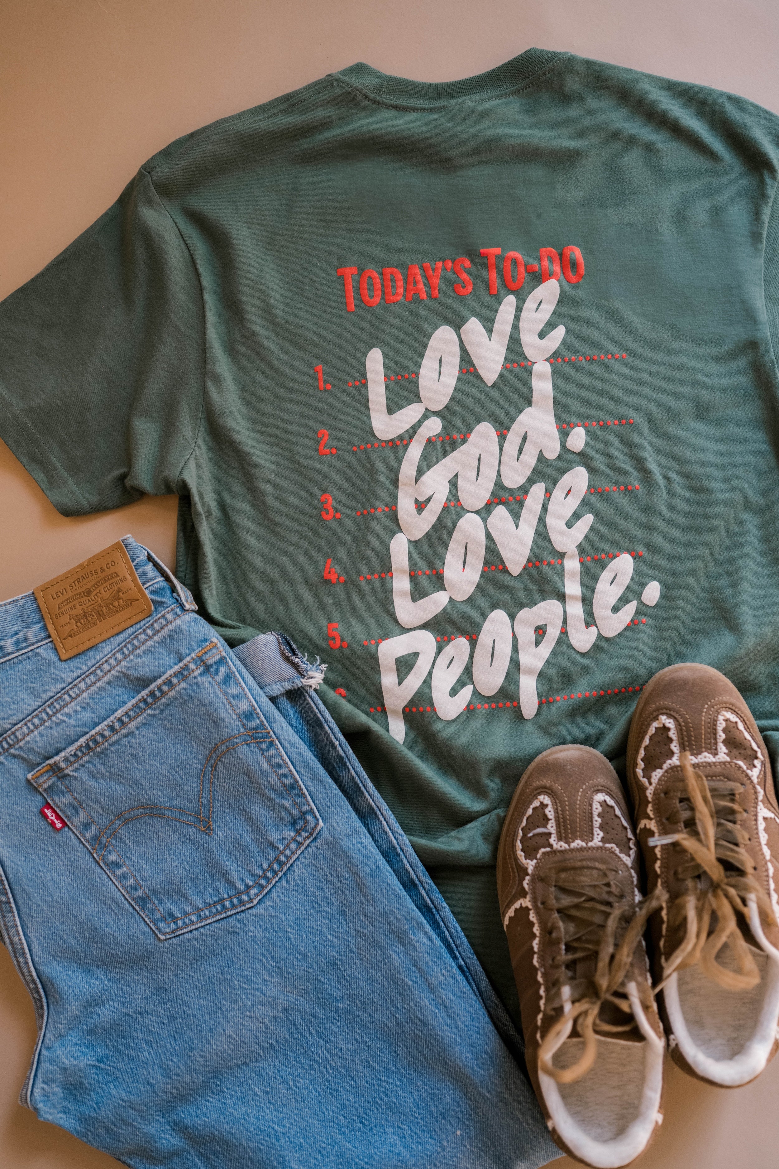 Love God Love People Tee- Muted Green