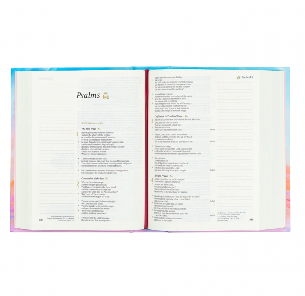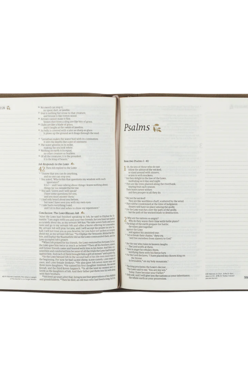 Whether you're seeking a Bible for writing prayers, taking sermon notes, diving deeper into God's word, or personal reflection, our collection has something for every seeker. Explore our creative journaling Bibles, devotional editions, and study journaling Bibles, each designed to inspire deeper engagement with Scripture.
