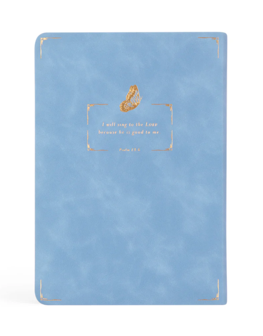 This beautiful notebook is inspired by the town of Bethany, where Jesus raised Lazarus from the dead. The gold-foiled butterfly, intentionally placed, symbolizes new life—just as Lazarus received through Christ’s resurrection power. In the same way Jesus called Lazarus to remove his grave clothes, the butterfly emerges in a new and radiant form, reflecting the transformation we experience in Christ. The back of this notebook features Psalm 13:6 “I will sing to the Lord, because He is good to me.” This verse captures the natural response of our hearts when we reflect on God’s goodness. May this notebook accompany you faithfully as you engage with the Word—whether through Scripture, sermon notes, journaling, or any form of reflection—serving as a space to record your thoughts, prayers, and encounters with his truth.