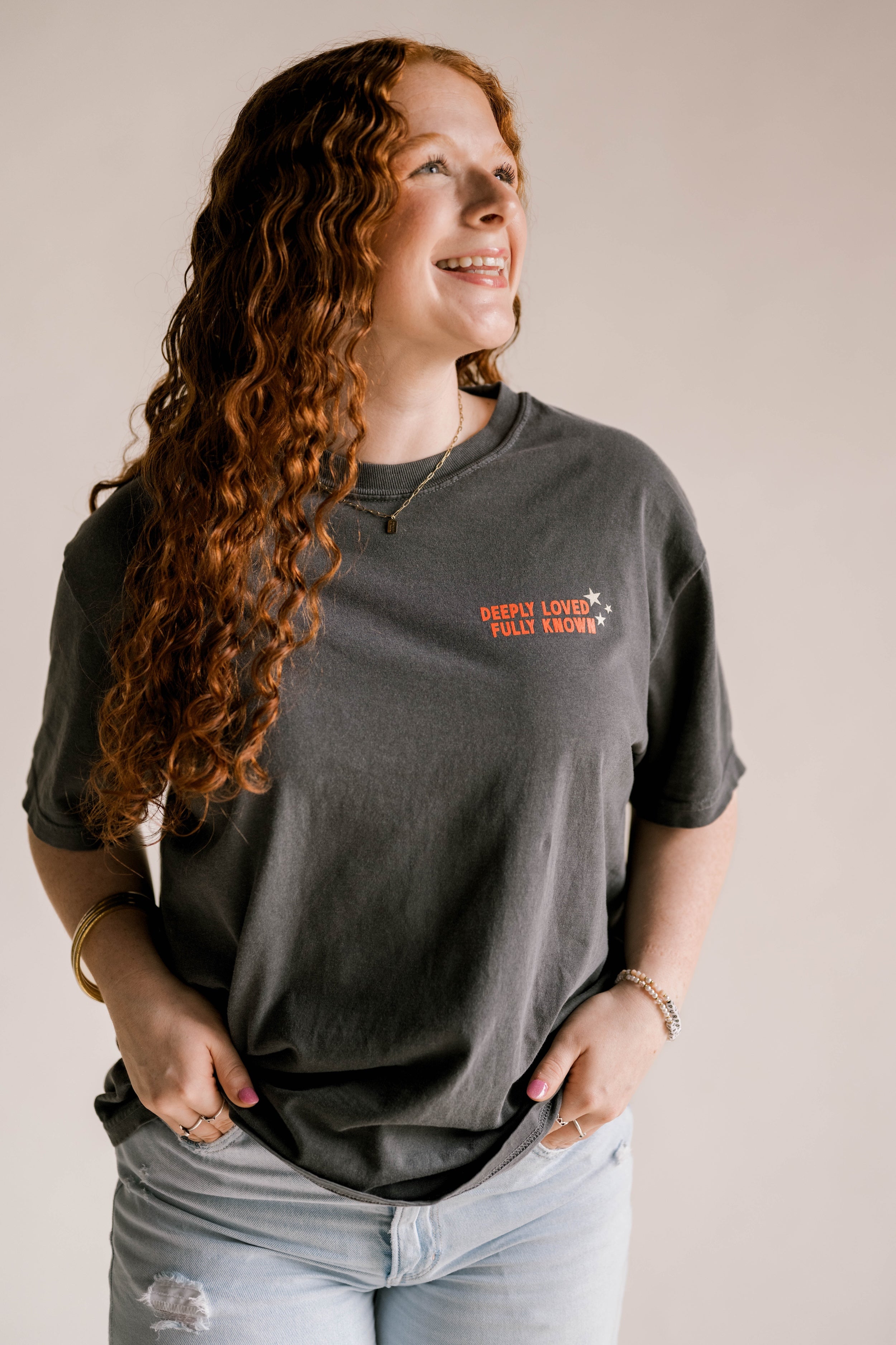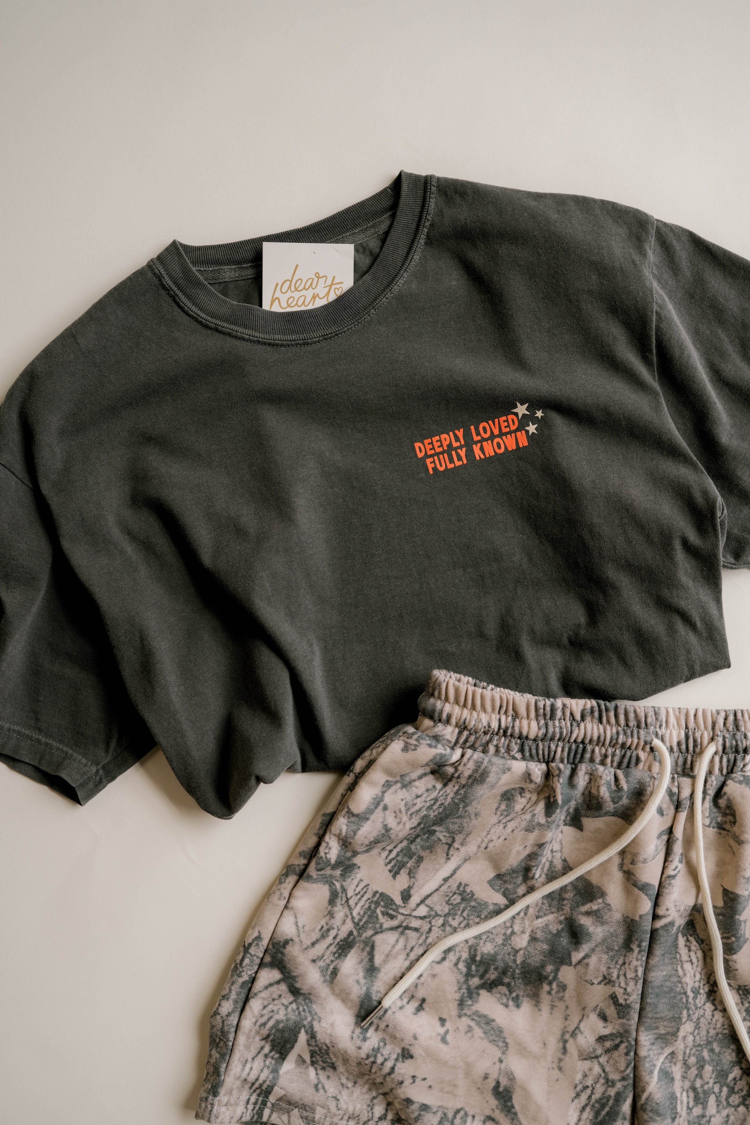 Charcoal Tee with burnt orange and cream ink