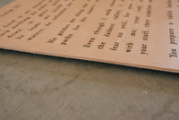 We are so excited to introduce you to our new leather banners. These are handcrafted by our founders husband, Kris, in their workshop in Texas. They are made of a nicely weighted 8 oz vegetable tanned leather and the artwork is burned with care into the leather. Since leather is a natural material, there might be variations in the burn and some parts of the letters might be darker than others. That's the beauty of handmade!