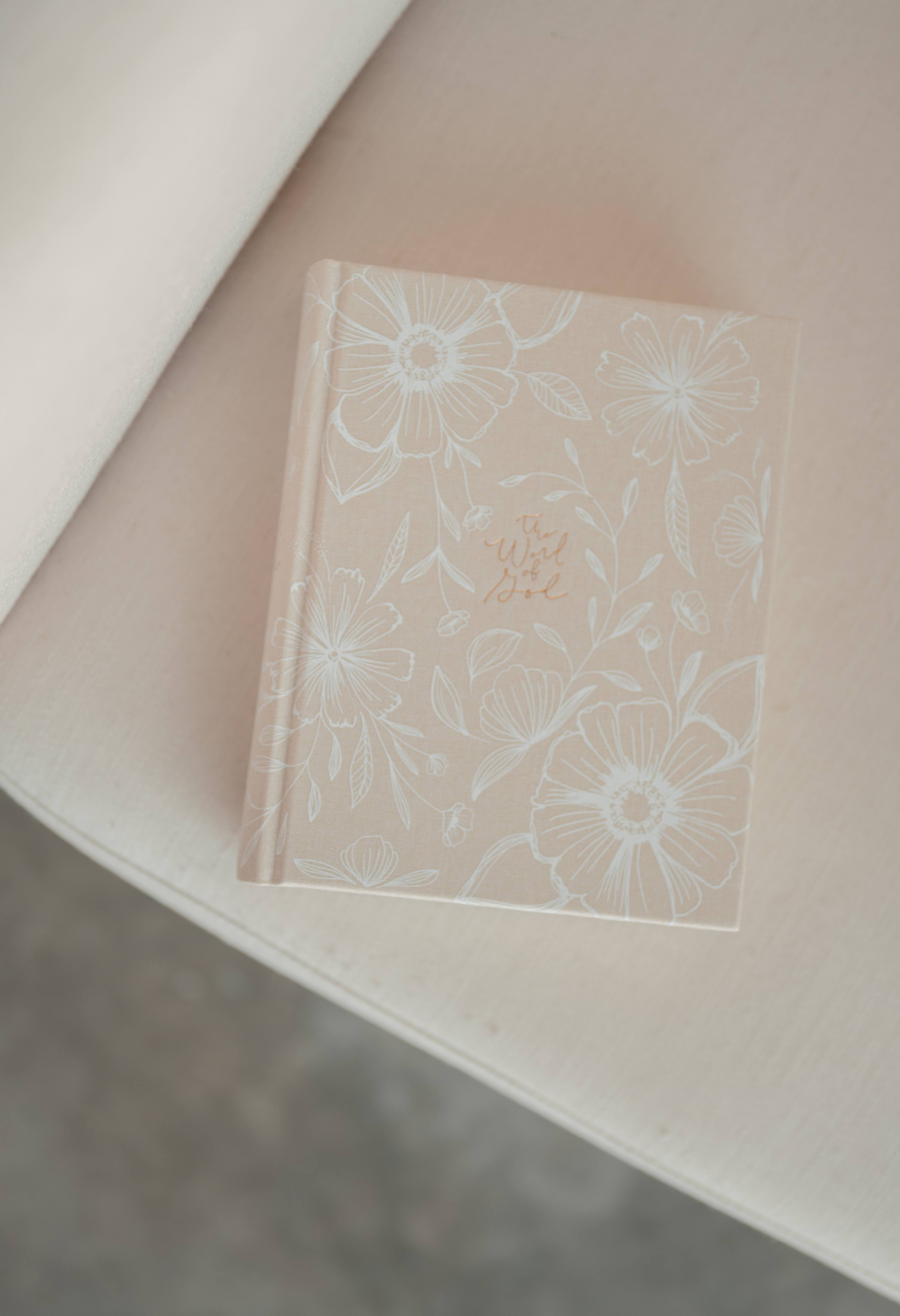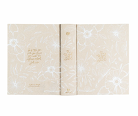 Cordova, Alaska is a breathtaking city situated on Prince William Sound in the Gulf of Alaska. It is surrounded by naturally protected waters and beautiful, untamed wilderness. The sprawling open spaces are surrounded by mountains and have a temperate rainforest climate, making them rich with vibrant foliage and flowers. The muted, light colors of this Bible mix a little icy winter with beautiful spring florals.