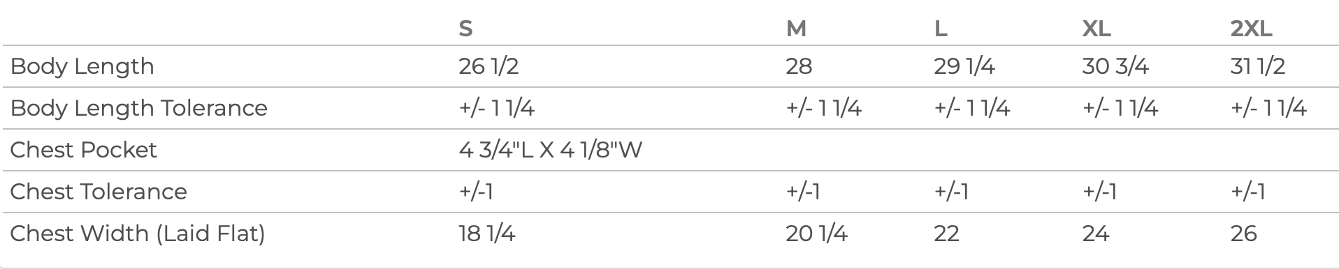 Size Chart in last image