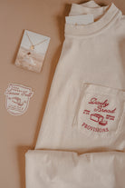 Comfort Colors Ivory Pocket Tee with Scarlet Ink
