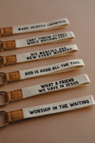 • Cross symbol stamped onto 1" leather tag attached to carabiner.